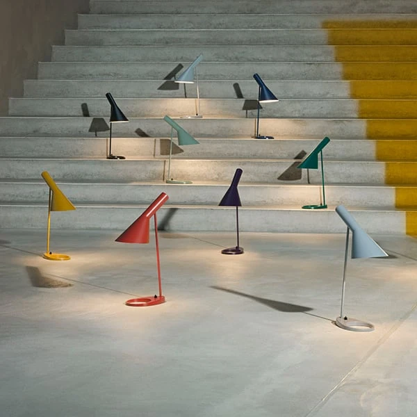 The AJ table lamp by Louis Poulsen is perfect for desks and nightstands alike, and it catches the eye also as a detail of the living room. The iconic form of Louis Poulsen’s AJ range was born in 1957 when the legendary Danish architect Arne Jacobsen designed the SAS Royal Hotel in Copenhagen including its interior and furniture. The timeless lamp has a sculptural design that consists of basic, geometric forms: a cone-shaped shade with a simple cylinder socket. The adjustable shade, painted matt white inside, reflects soft and pleasant light with no glare. The AJ range has become a Danish design icon and one of the most beloved pieces created by Arne Jacobsen. In celebration of the 60th anniversary of the collection, Louis Poulsen launched AJ floor, wall and table lamps in new, dynamic colours.