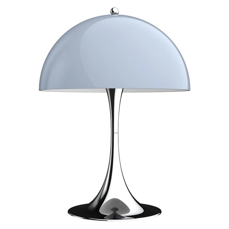 Originally released in 1971, Panthella is one of the most popular products designed by Verner Panton. Panthella’s light source is hidden under the hemispheric shade that directs the light down towards its trumpet-shaped base. This not only gives the lamp a distinctive, balanced silhouette but also contributes to the distribution of light due to the reflections on the chromed metal surface.